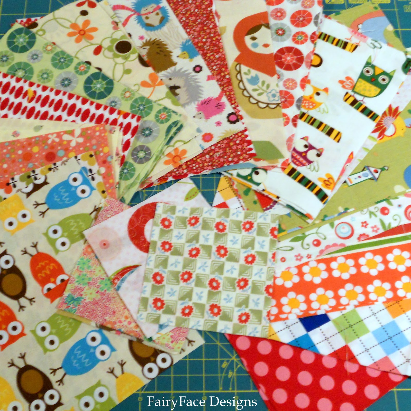 A Moda "Happy" charm pack and a FQ of Moda "It's a Hoot" Owls fabric: