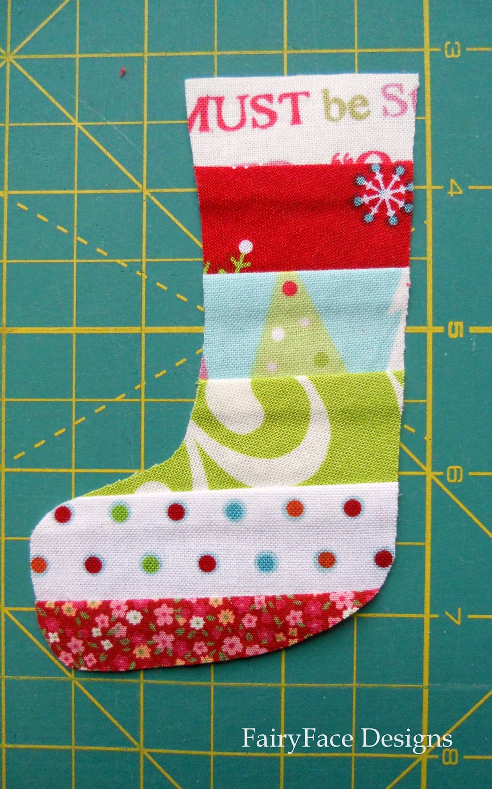 4. Now for the fun part - making each stocking! There are a number of techniques you could use. I did two patchwork stockings, a fussy cut one and an embellished one.